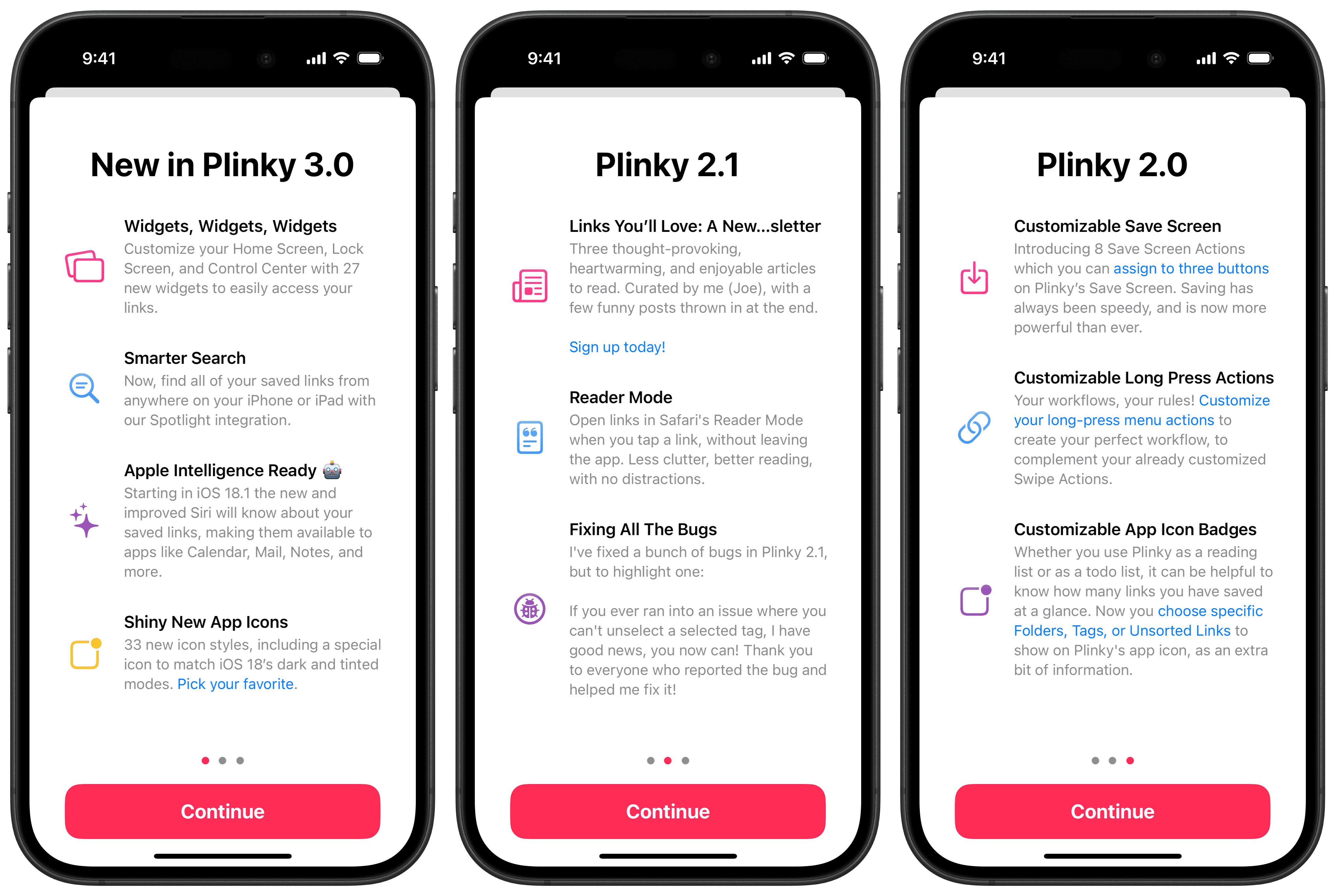 Since launching Plinky I've released an update every month. With so many new features, I wanted to ensure that people know I'm adding a lot of value to Plinky. This led me to build my own version of a What's New Screen, in a library I call Recap.